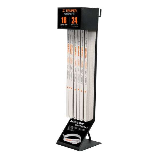 • Para exhibir 300 seguetas bimetálicas con cuerpo flexible fabricado de acero