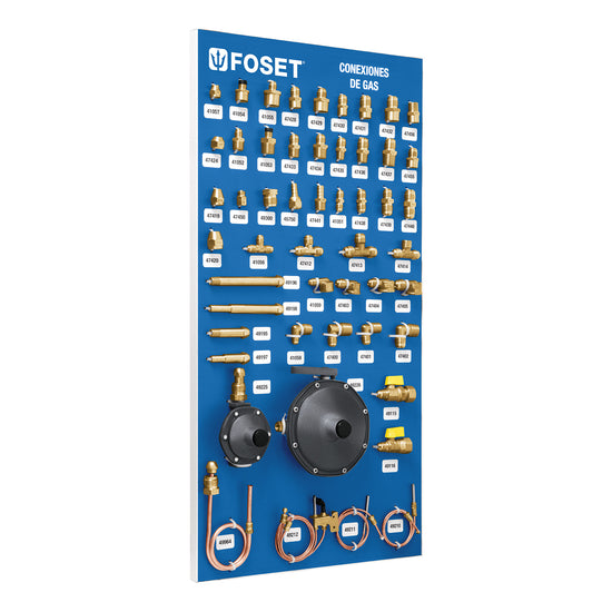 Exhibidor con conexiones de latón para gas, Foset, 55786