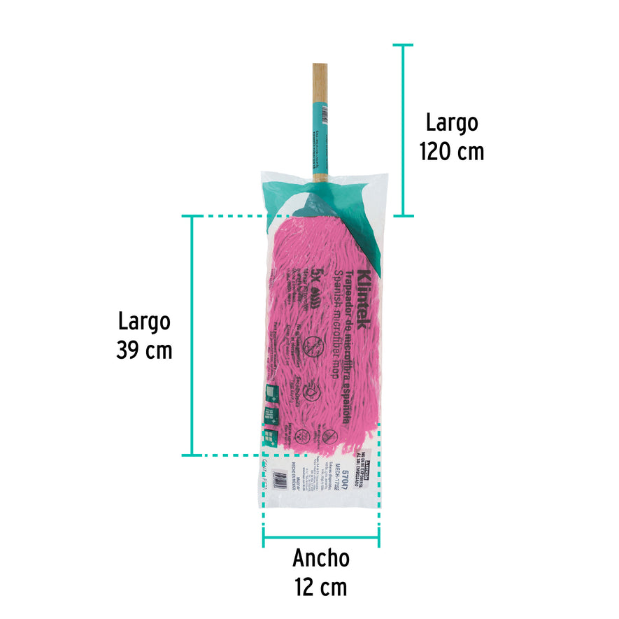 Trapeador de microfibra española, bastón de 120 cm, KLINTEK Caja con 6, 57047Trapeador de microfibra española, bastón de 120 cm, KLINTEK Caja con 6, 57047Trapeador de microfibra española, bastón de 120 cm, KLINTEK Caja con 6, 57047