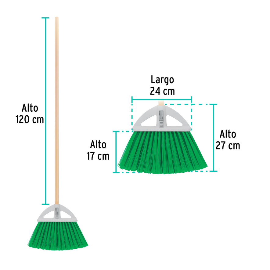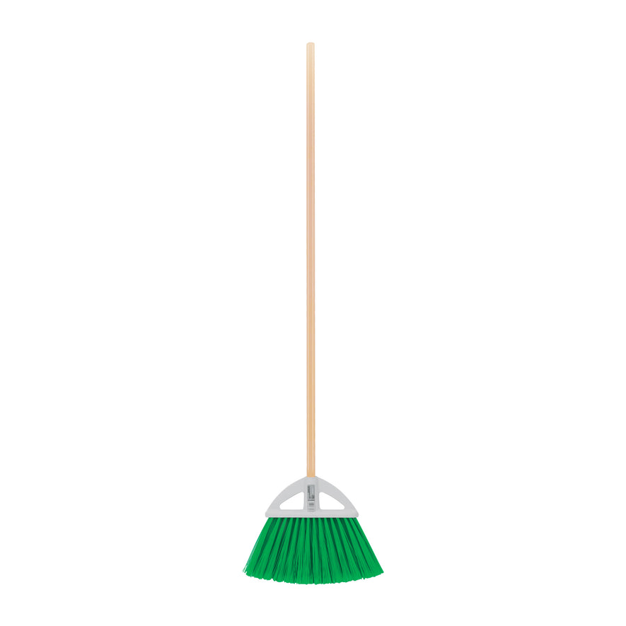 Escoba grande tipo abanico, cerdas de PVC, bastón de madera Caja con 12, 57052