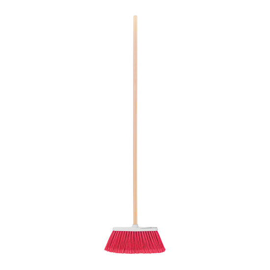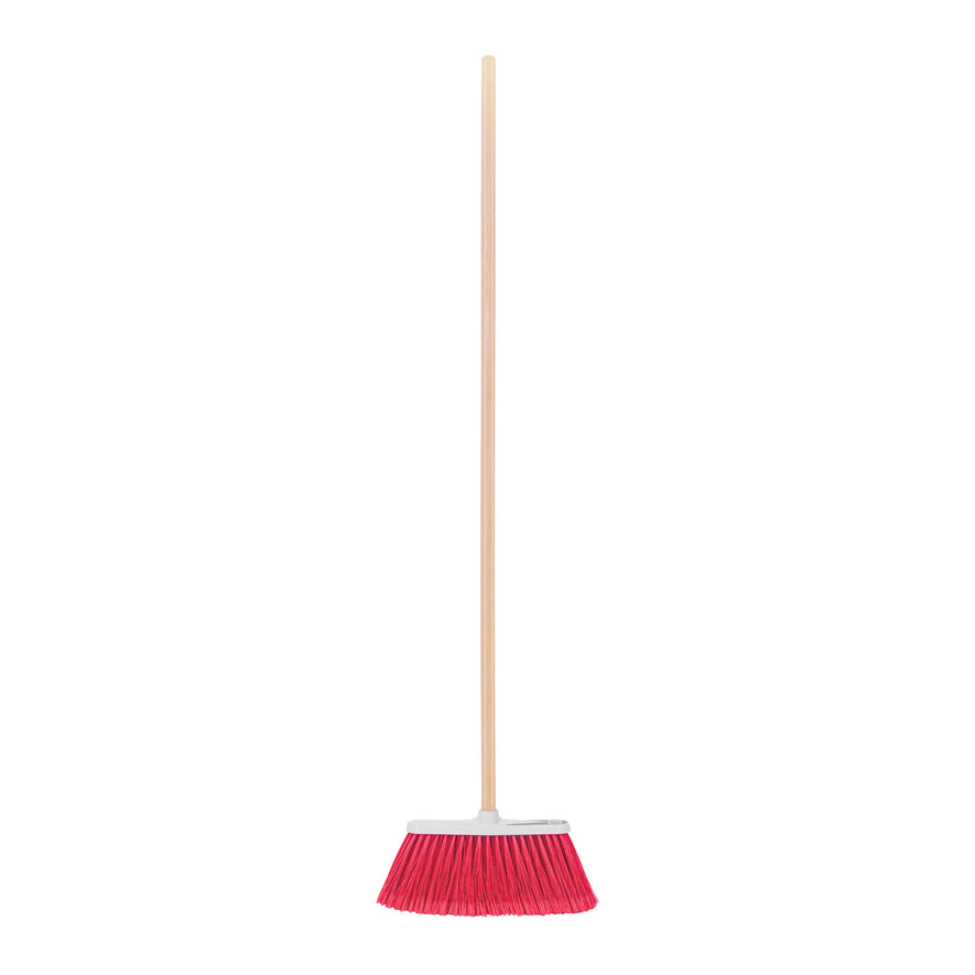 Escoba mediana tipo cepillo, cerdas de PVC, bastón de madera Caja con 12, 57054