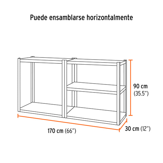 - Estructura y repisas metálicas con acabado en pintura electrostática resistente a la oxidación y rayaduras