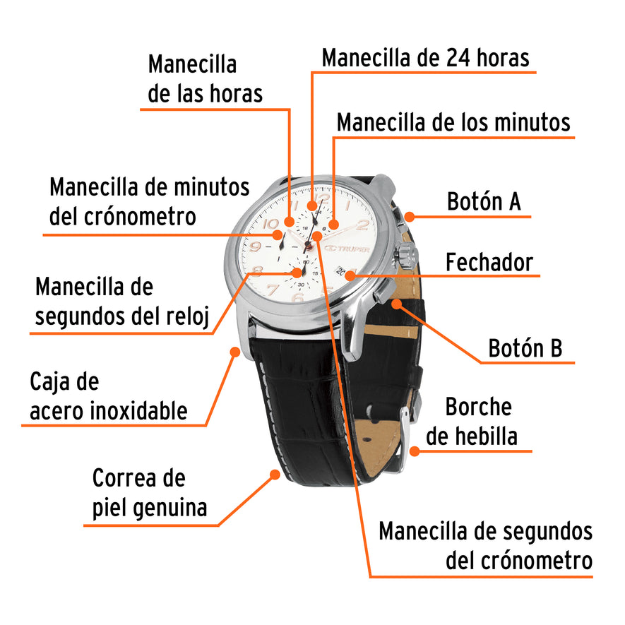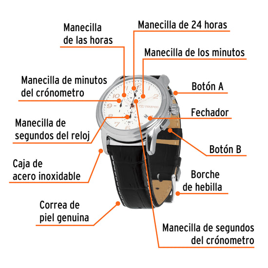 Reloj para caballero, correa de piel, Truper, 60071Reloj para caballero, correa de piel, Truper, 60071Reloj para caballero, correa de piel, Truper, 60071