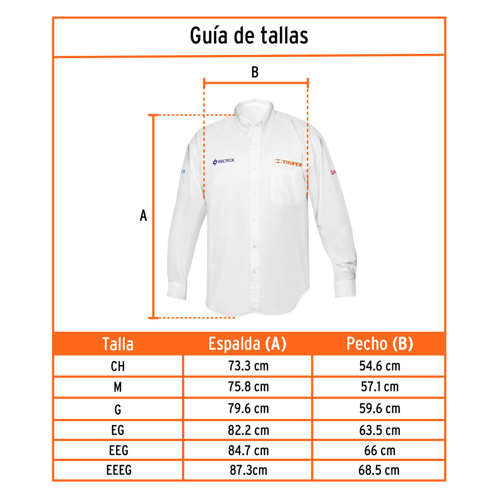 Camisa manga larga para hombre, blanca, CH, Truper, 60360Camisa manga larga para hombre, blanca, CH, Truper, 60360