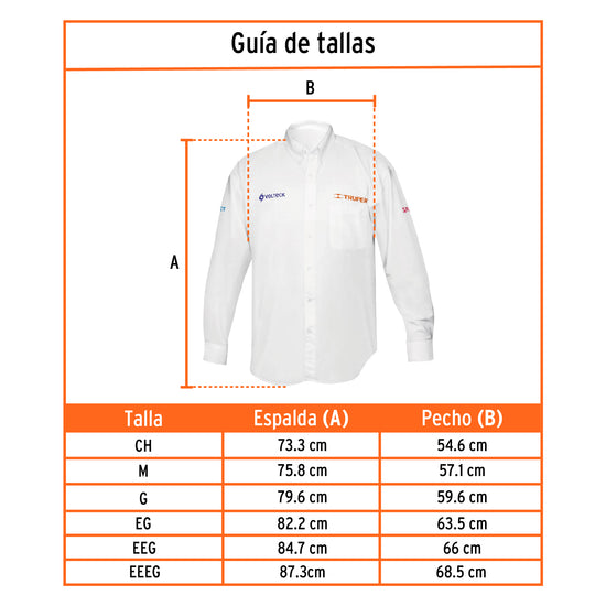 Camisa manga larga para hombre, blanca, G, Truper, 60362