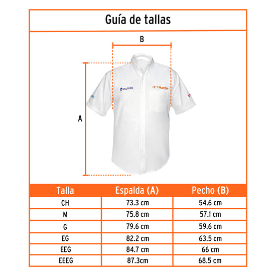 Camisa manga corta para hombre, blanca, EEG, Truper, 60381Camisa manga corta para hombre, blanca, EEG, Truper, 60381