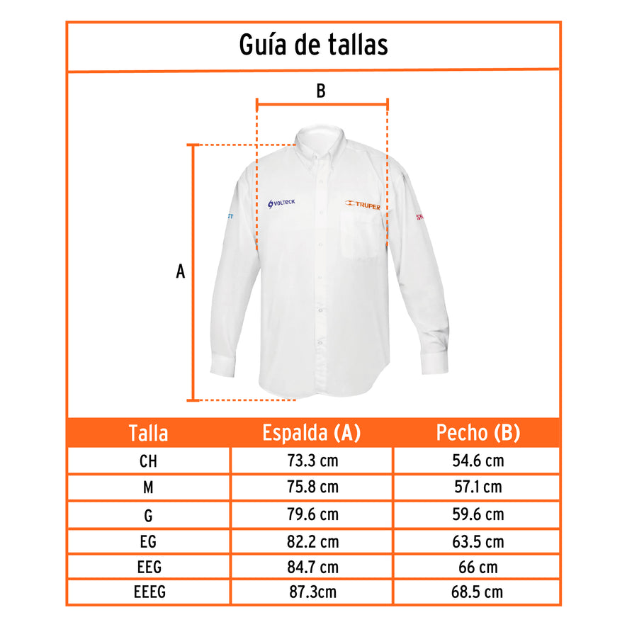 Camisa manga larga para hombre, blanca, EEG, Truper, 60385Camisa manga larga para hombre, blanca, EEG, Truper, 60385