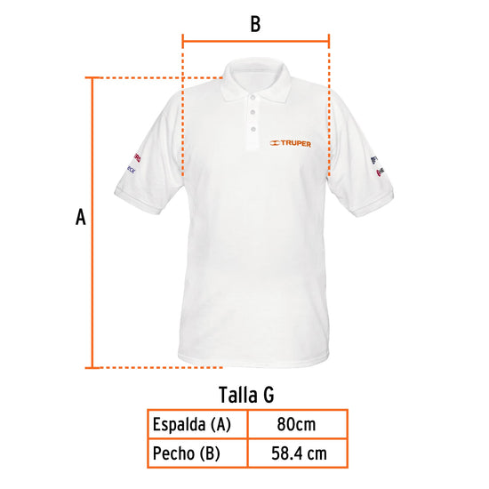 Playera polo para hombre, blanca, G, Truper, 60453Playera polo para hombre, blanca, G, Truper, 60453Playera polo para hombre, blanca, G, Truper, 60453