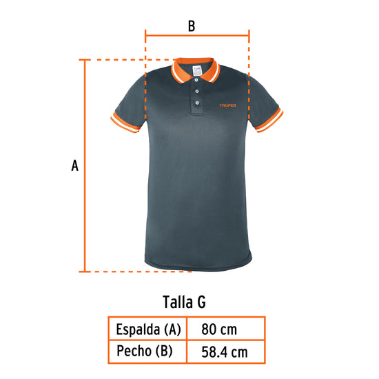 Playera polo performance para hombre, gris, G, Truper, 61083