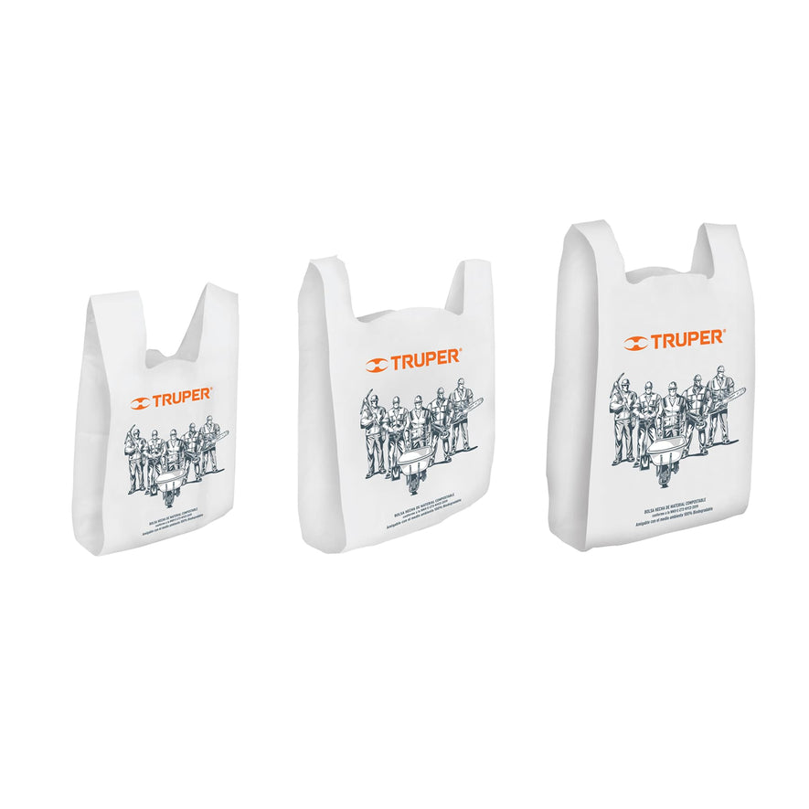 Bolsa plástica biodegradable de 20 x 40 cm, Truper Caja con 100, 61128