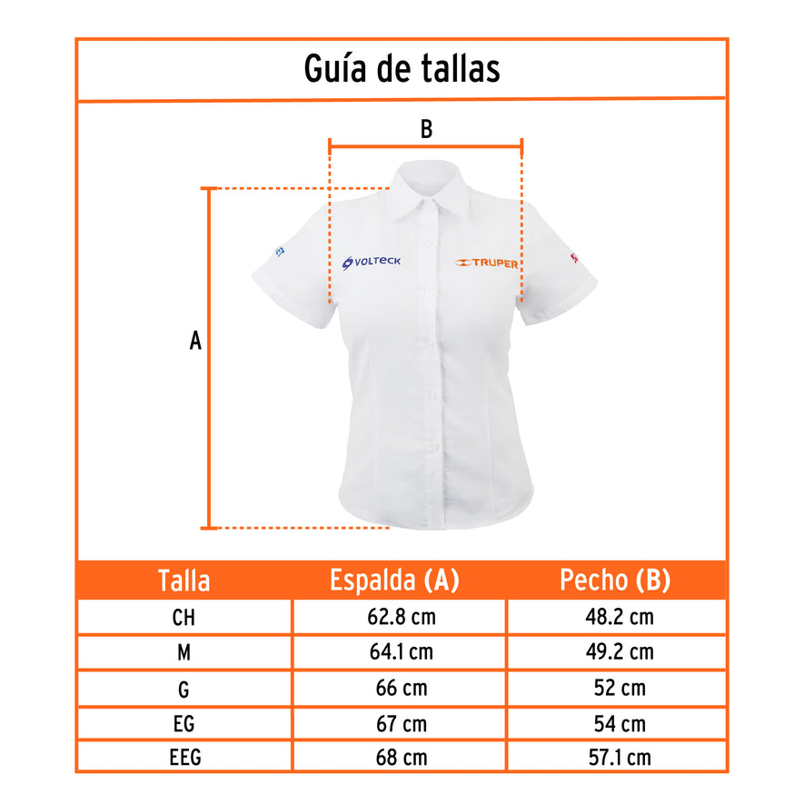 Camisa manga corta para mujer, blanca, CH, Truper, 62101Camisa manga corta para mujer, blanca, CH, Truper, 62101