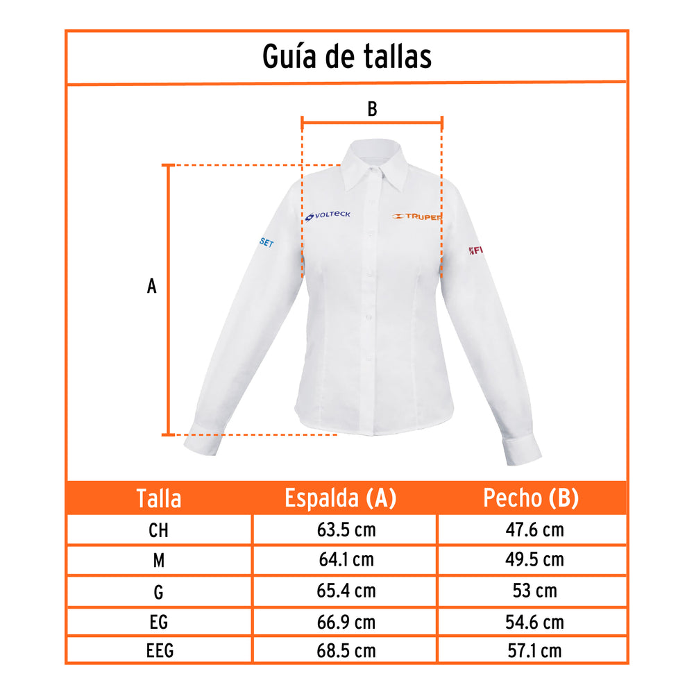 Camisa manga larga para mujer, blanca, G, Truper, 63108
