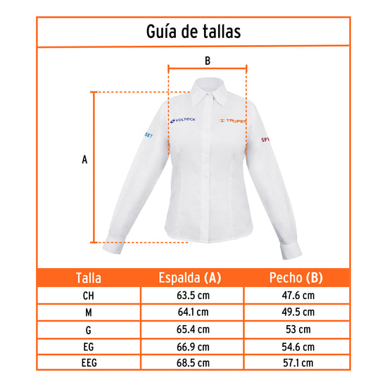 Camisa manga larga para mujer, blanca, EG, Truper, 63109Camisa manga larga para mujer, blanca, EG, Truper, 63109