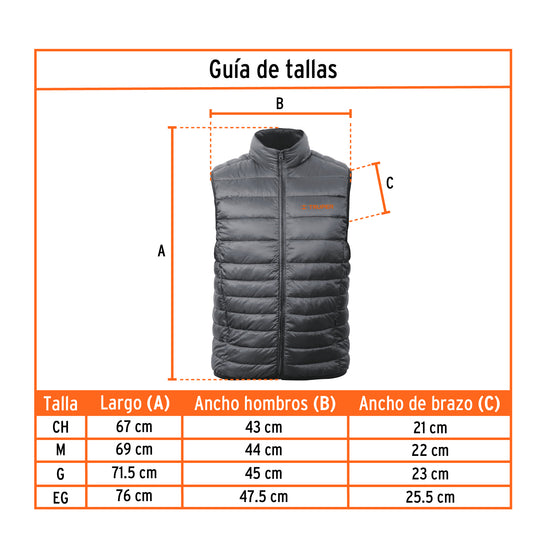 Chaleco de plumas para hombre, gris, EG, Truper, 65009Chaleco de plumas para hombre, gris, EG, Truper, 65009