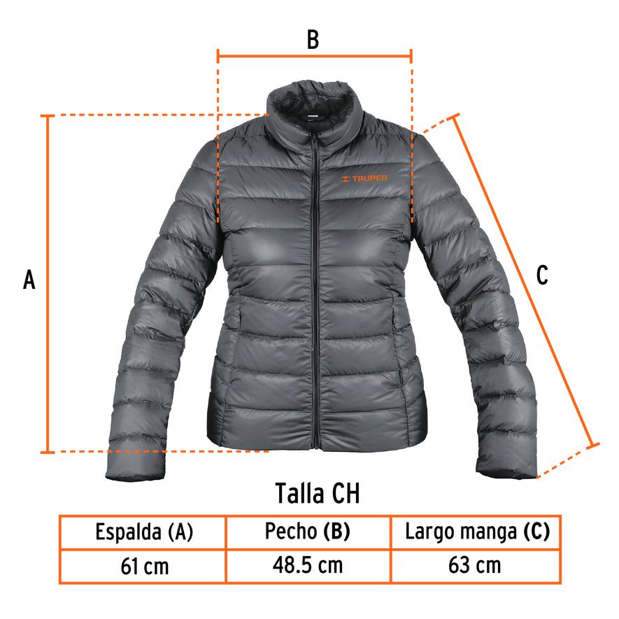 Chamarra de plumas para mujer, gris, CH, Truper, 66004