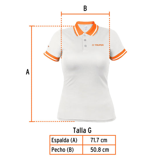Playera polo performance para mujer, blanca, G, Truper, 69980